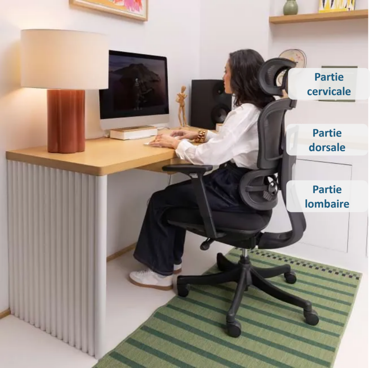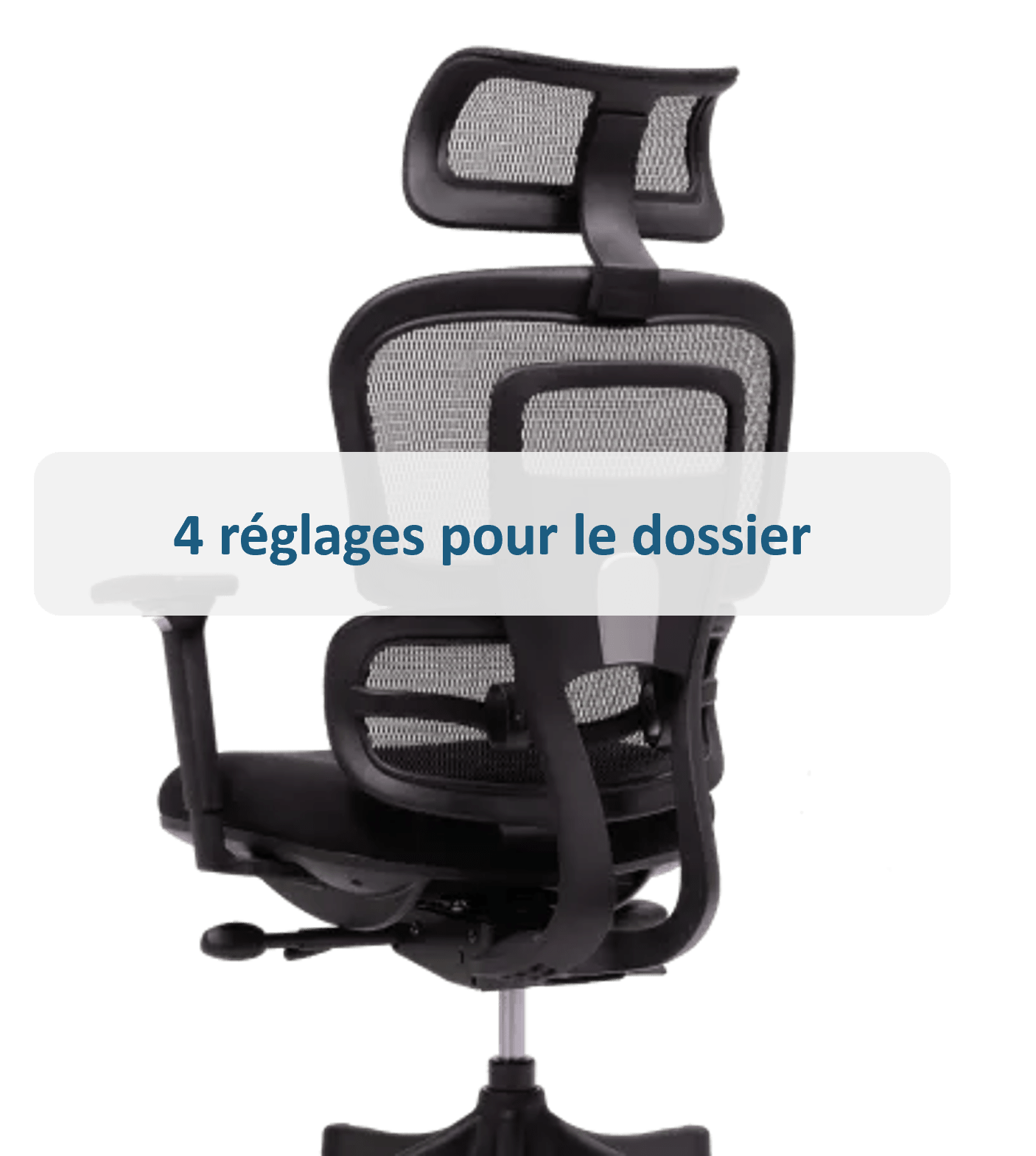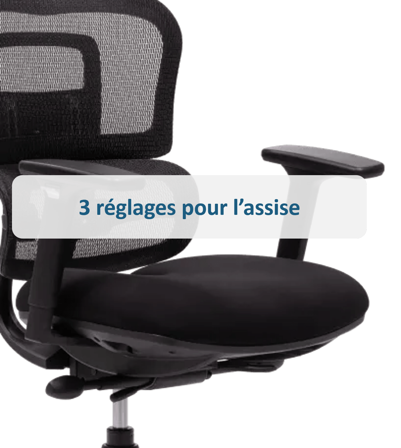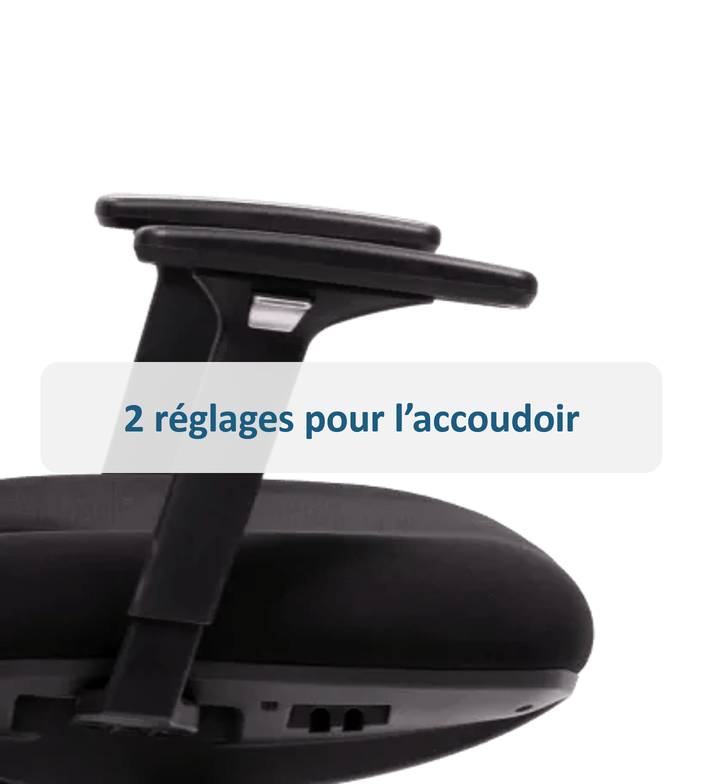 Ces réglages permettent d’obtenir une position de travail idéale et personnalisée, réduisant la fatigue et améliorant votre productivité.