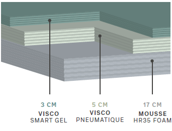 La combinaison du Visco Smart Gel et de la Visco pneumatique permet un enveloppement du corps et épouse parfaitement la colonne vertébrale qui conserve sa ligne naturelle.